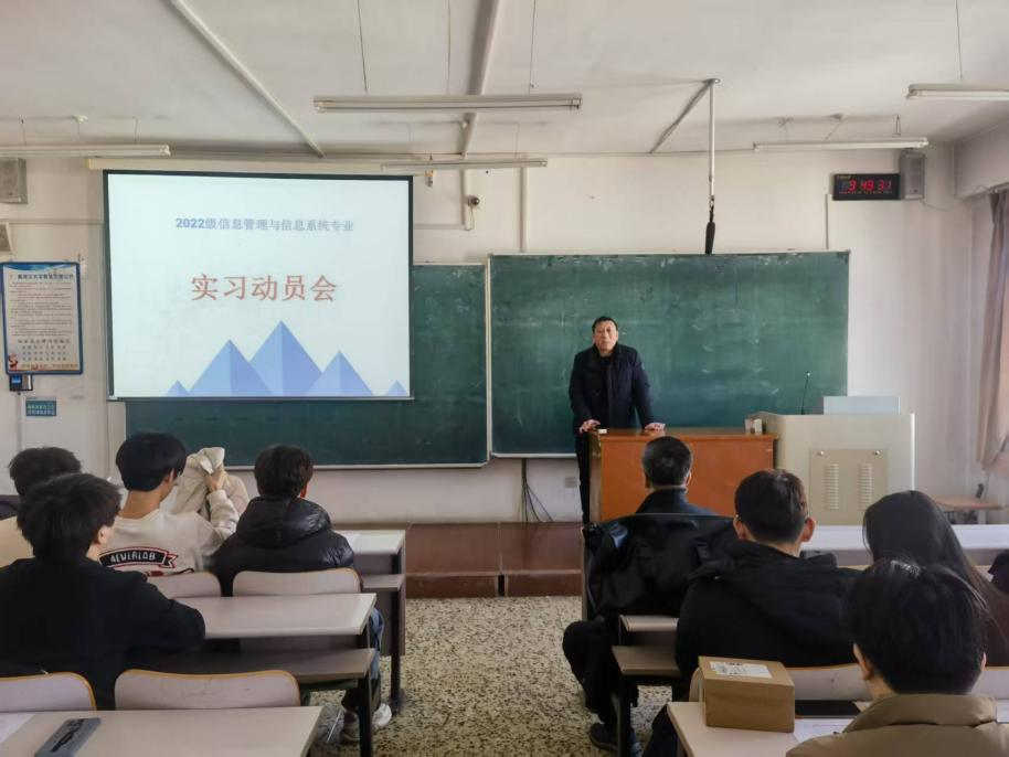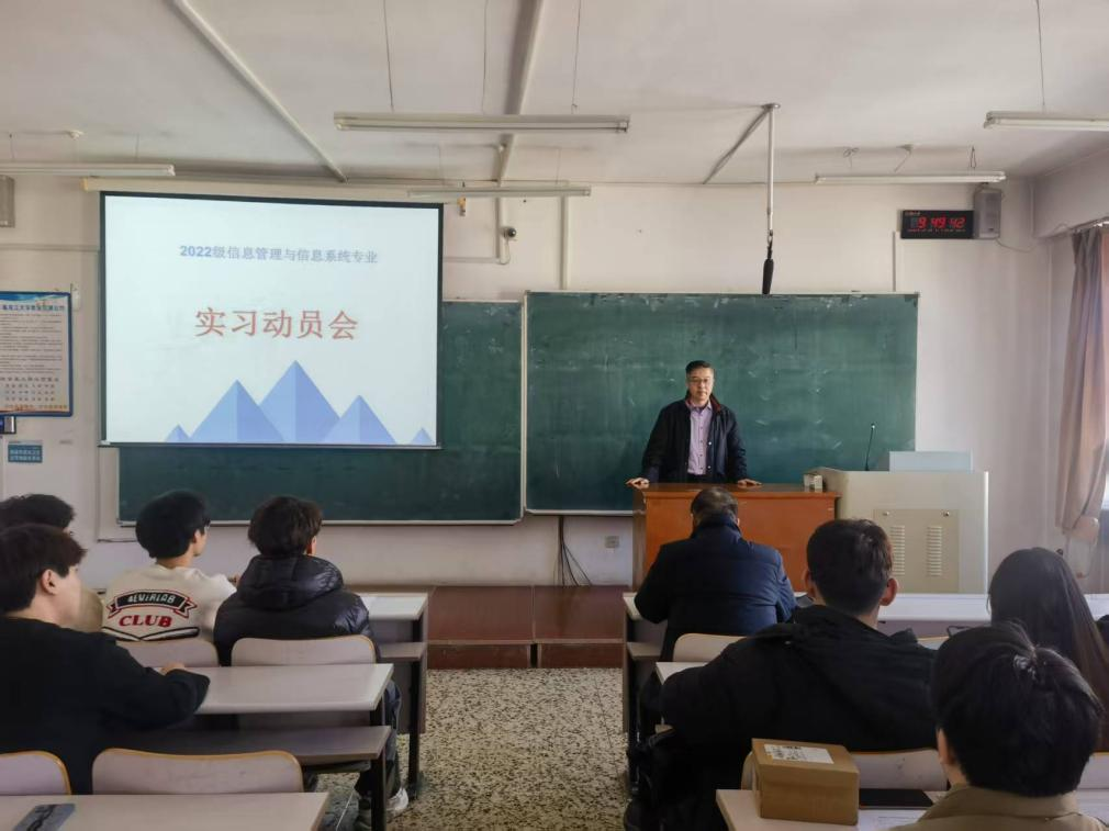 2025年3月3日上午10:00,信息管理与信息系统专业在汇文楼566召开了2022级学生专业实习动员会,专业实习带队老师和全体2022级同学参加了会议。专业负责人刘甲学强调了实习的目的与意义,强调实习是理论与实践结合的关键环节,旨在提升学生专业技能、职业素养及社会适应能力。明确实习目标包括深化专业认知、积累行业经验、明确职业规划等。