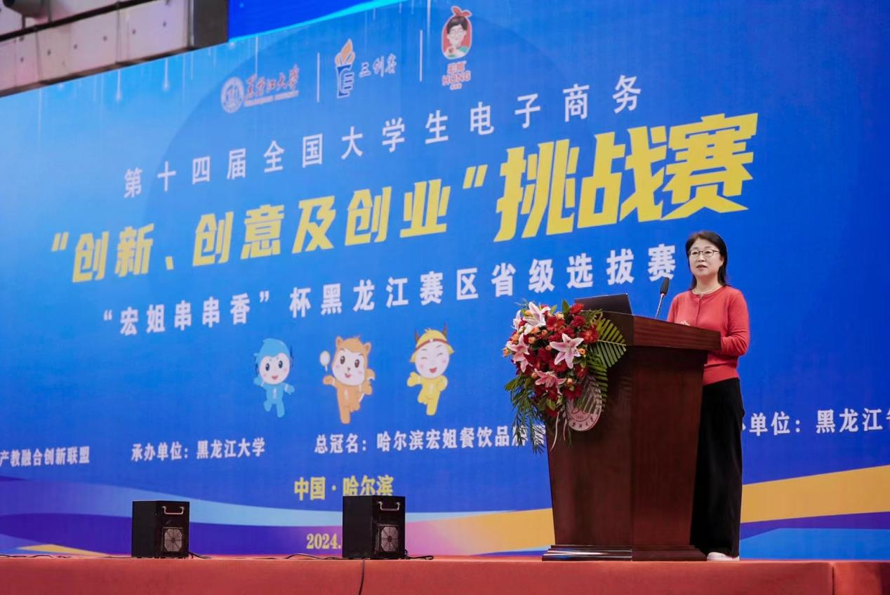 5月18日,第十四届全国大学生电子商务“创新、创意及创业”挑战赛黑龙江赛区选拔赛在黑龙江大学体育馆举行。“三创赛”主席、副主席、评审专家,省人力资源和社会保障厅、省商务厅、总冠名、协办商、黑龙江大学及全省33所本科院校的领导和师生参加了大赛开幕式。开幕式后全体参赛选手及评委前往汇文楼进行比赛,会场同时进行了论坛讲座。