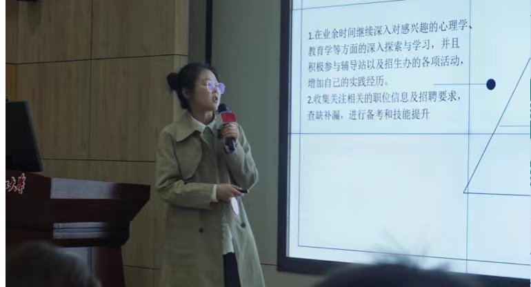 本次大赛分为成长赛道和就业赛道。首先,由两个赛道参赛选手按照赛前抽签顺序进行3分钟职业生涯发展展示和就业能力展示。答辩结束后,由评委老师为选手打分,所有分数的平均分为选手最终得分。全部选手展示后,由海康软件部门经理、就业指导老师黄竞弘进行点评,她肯定了各位选手的个人能力,并为每一位选手提出个性化意见。