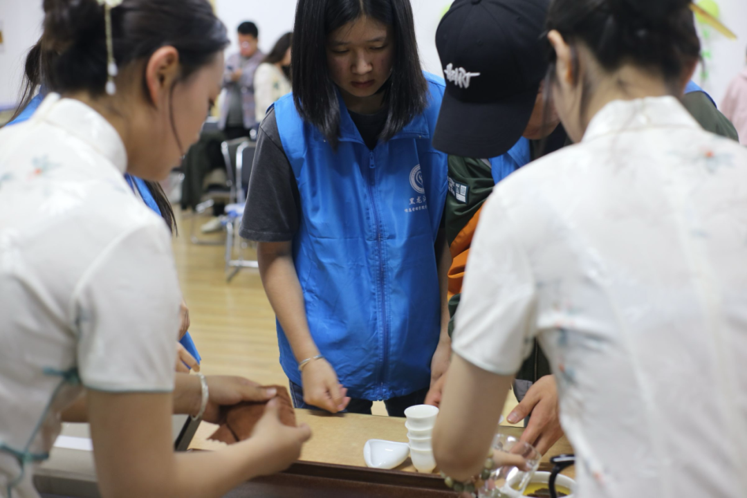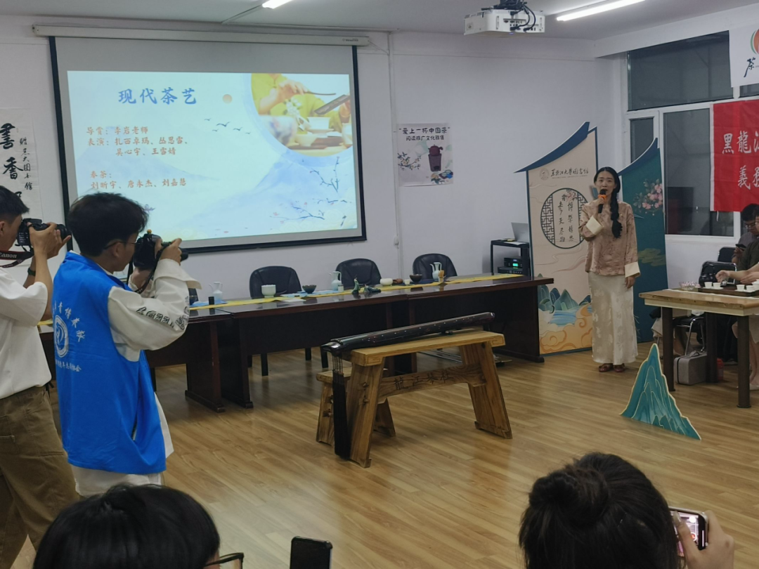 黑龙江大学图书馆邀请了茶艺大师、文学爱好者、音乐家等多领域的专家和艺术家,为大家呈现了别开生面的文化盛宴。志愿者受邀参与,在现场欣赏了古琴演奏、茶分享、宋代点茶、现代茶艺表演、民歌演唱等多项文化活动表演。活动现场安排了许多互动环节,志愿者们也踊跃参与其中,积极答题、观看点茶表演以及品尝香气扑鼻的好茶。