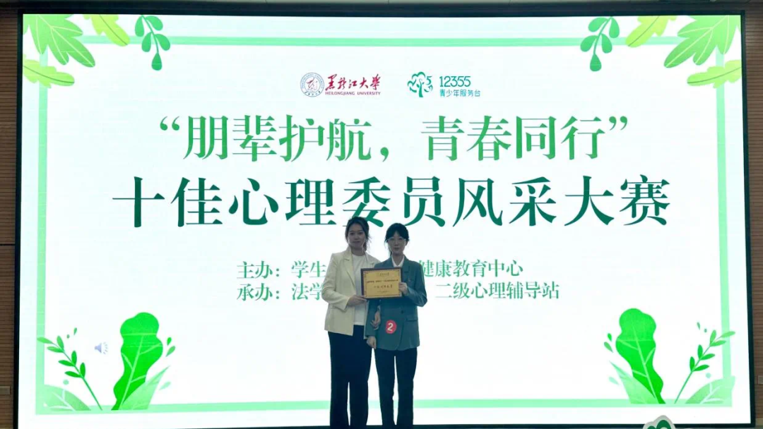 为充分发挥学生心理骨干在青春健康工作中的主动性、积极性,带领大家进一步了解青春健康同伴教育主持人的职责及意义,学生工作部心理健康教育中心举办了黑龙江大学青春健康同伴教育主持人培训班,我院尹师鸿和李天赫同学积极参与培训,展现出高度的学习热情。在第二届青春健康同伴教育总结会上,李汶睿同学荣获“优秀主持人”称号,展示了信管学子的风采。