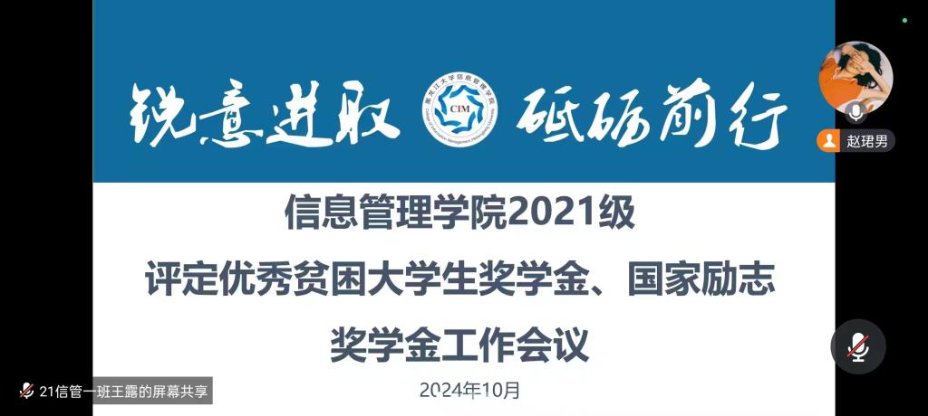 为激励家庭经济困难学生勤奋学习、努力进取,按照《关于做好2024年普通高校本专科生国家励志奖学金工作的通知》(黑教服(2024)28号)《黑龙江大学本科生国家励志奖学金评审办法》《黑龙江大学学生管理规定》《黑龙江大学本科生奖学金评审办法》等文件要求,B体育各年级于10月11日召开2023—2024学年国家励志奖学金、优秀贫困大学生奖学金评定工作会议。会议由各年级辅导员主持,学院各年级家庭经济困难学生参加会议。