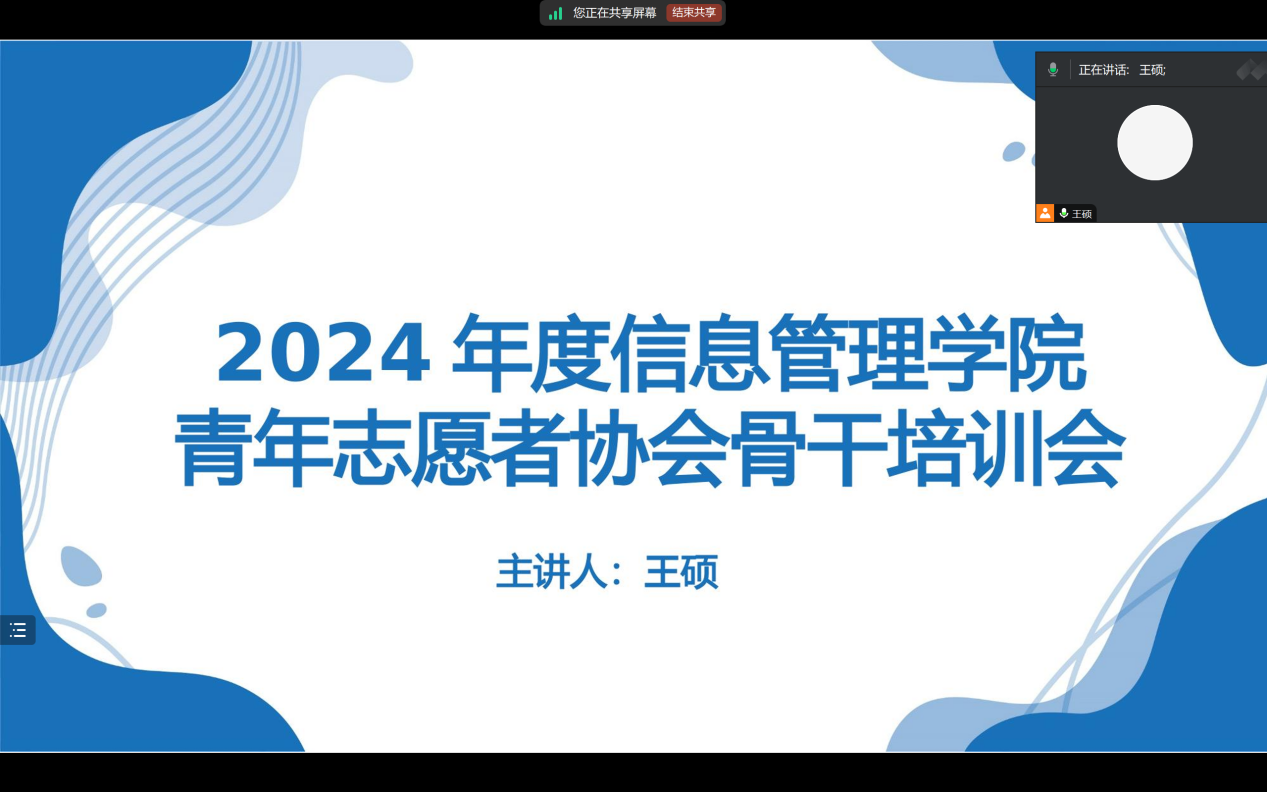 为提升B体育青年志愿者骨干的综合素质,增强其志愿服务意识,进一步推动B体育青年志愿服务工作。B体育于2024年10月16日召开2024年度信管青协骨干培训会,本次培训由学院团委副书记、2022级思想政治辅导员王硕担任主讲人,B体育青年志愿者协会主席团、部长团参会。