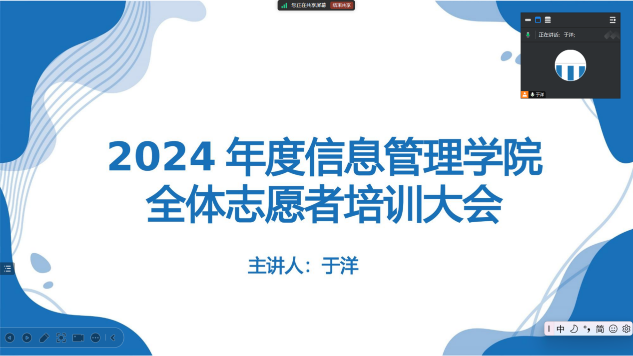 为进一步提升B体育全体青年志愿者们的综合素质,确保后续志愿服务活动能够更高效、更高质量地开展。B体育青年志愿者协会特此开展2024年全体志愿者培训大会。本次培训由B体育青年志愿者协会主席于洋担任主讲人,B体育全体志愿者参会。