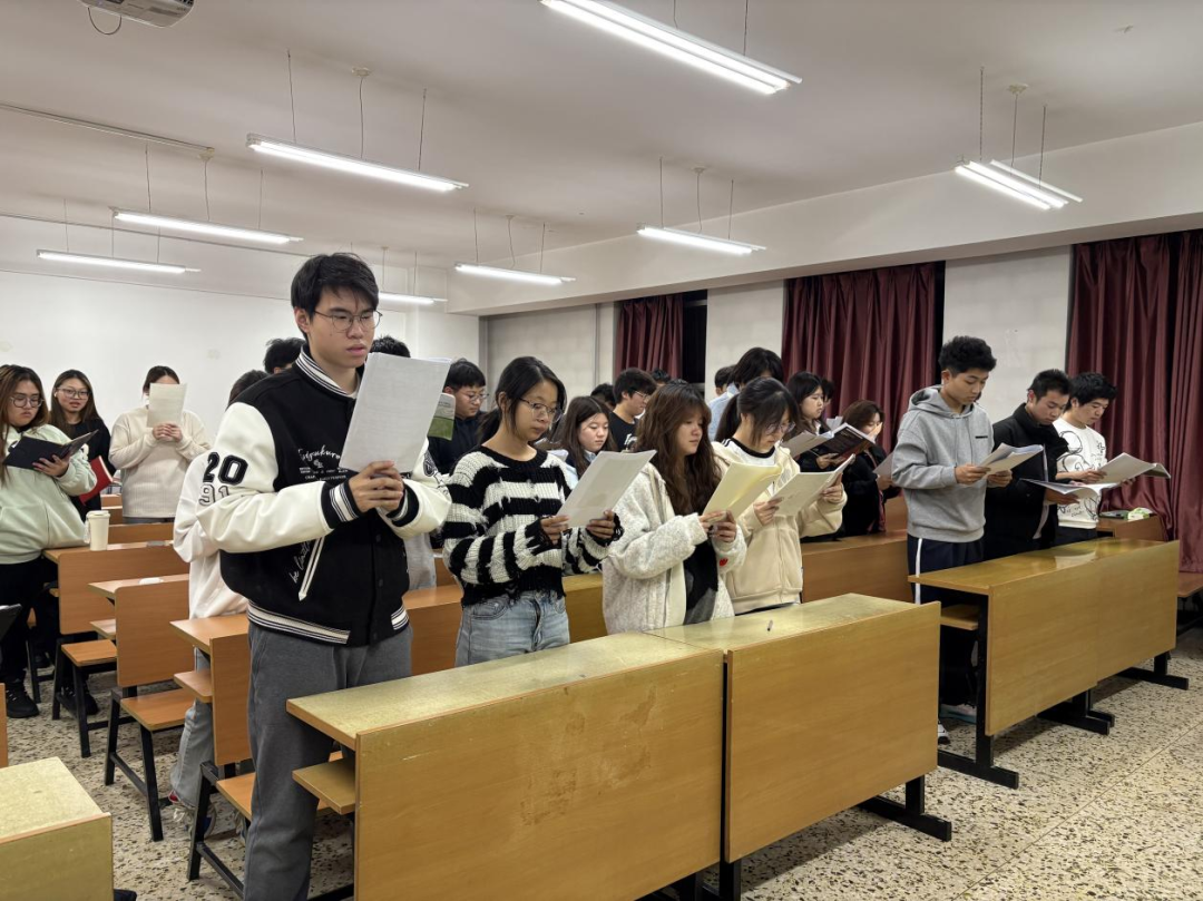 诗词是精炼的语言艺术,能传递情感、传承文化。它以简短精炼的文字描绘画面,跨越时空引发共鸣,记录社会风貌与价值。B体育2024级在各班学习委员的带领下,于2024年10月29日利用晚自习时间在汇文楼开展“经典恒久远,古韵咏流传”诵读活动。