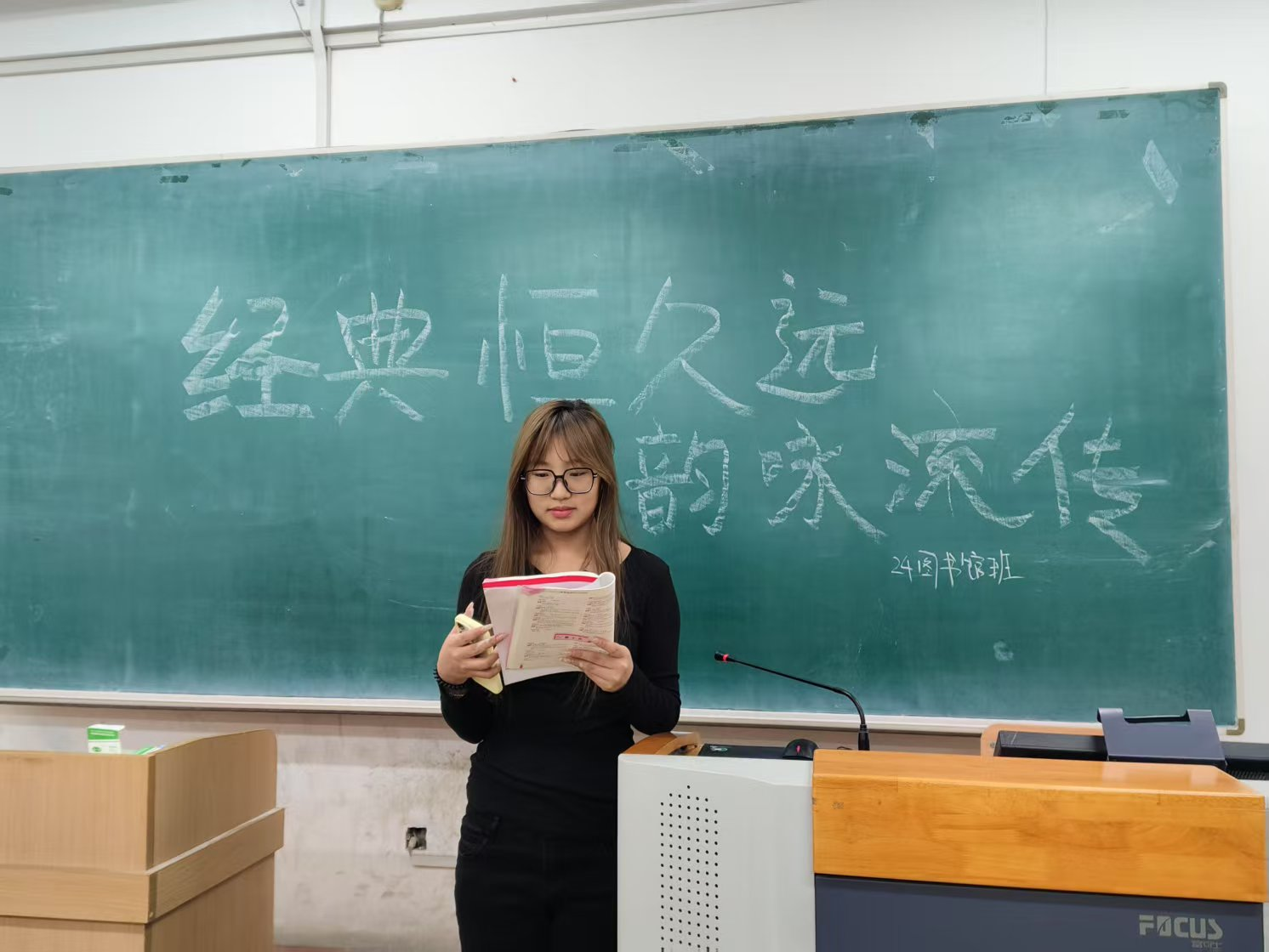 为加强B体育学风建设,激发同学们对诗词的学习热情。B体育2024级学生在各班学习委员带领下,于4月1日晚自习在汇文楼开展“经典恒久远,古韵咏流传”诵读活动。