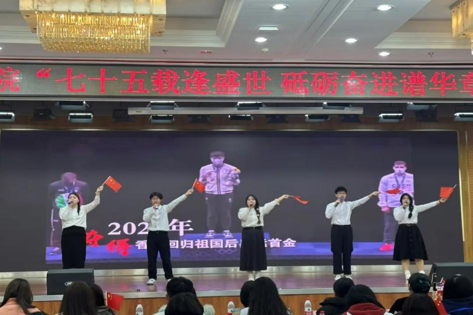 为热烈庆祝中华人民共和国成立75周年,全面贯彻党的二十大精神、党的二十届三中全会精神和团十九大精神,牢牢把握习近平总书记在黑龙江视察时的重要讲话重要指示精神,团结引领广大团员青年为中国式现代化挺膺担当,在新时代龙江振兴中再谱新篇。B体育积极响应校团委号召,于2024年11月27日18:00在主楼一楼报告厅举办“七十五载逢盛世,砥砺奋进谱华章”主题团日活动,B体育党委书记刘荫梅、院长黄丽霞、党委副书记赵丽明、副院长周丽霞、团委书记孙悦、团委副书记王硕、郭曦萌、赵珺男、耿强、穆雨彤、各学院团委学生副书记代表、校学生学理论研究会评审团成员、学院2024级12位新生班主任及2024级学生参加。