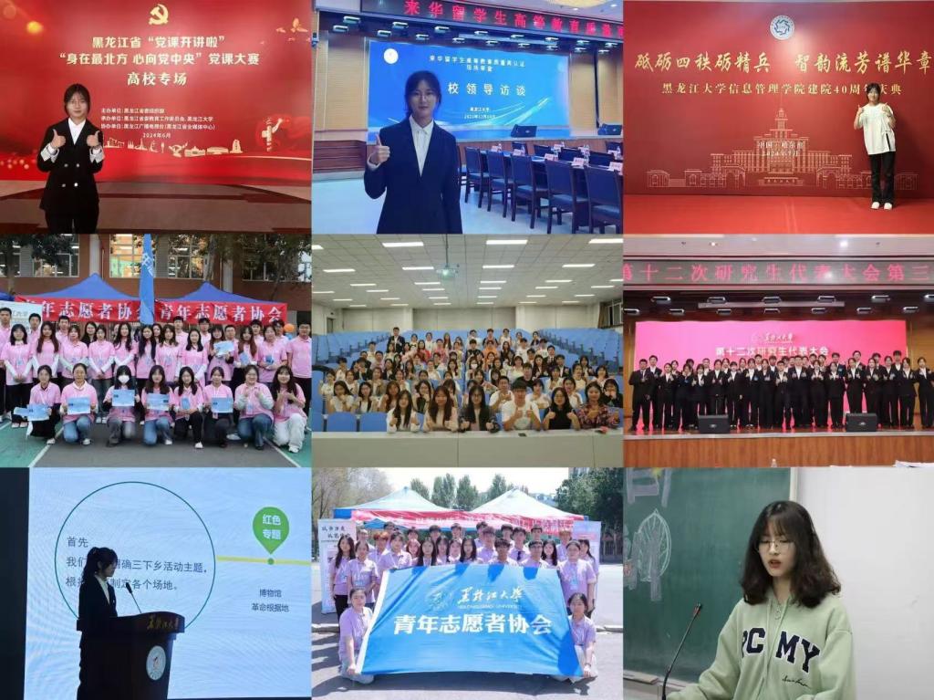 感谢学校和学院的鼓励与栽培,使我有机会在不同的学生工作岗位历练成长。在校青协和班级任职期间,积极开展并参与儿童福利院等7项志愿服务活动,带领团队获得第七届黑龙江省志愿服务项目大赛铜奖。同时根据党的二十大精神,结合习近平总书记视察黑龙江期间的重要讲话重要指示精神,积极组织班级同学开展主题团课学习10余次,以实际行动发挥党员先锋模范作用。依托各类主题活动,采取“线上+线下”相结合的宣传方式,提高班级同学的理论能力水平,班级青年大学习参与率保持100%。