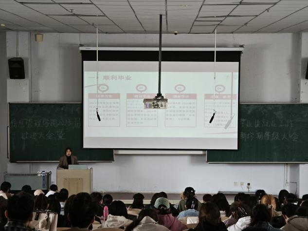 为切实推动2025届毕业生就业工作有效开展,促进2025届毕业生就业工作落细落实落地,同时保障学生“五一”劳动节假期安全,2024年4月29日12时15分,B体育于汇文楼220教室召开2025届毕业生就业工作推进大会暨新学期年级大会。会议由B体育团委副书记、2025届毕业生辅导员赵珺男老师主持,B体育全体2025届毕业生参会。