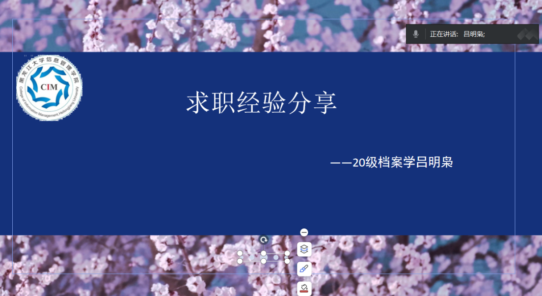 为帮助毕业年级未就业学生尽快掌握求职技巧、明确目标岗位,黑龙江大学B体育于2024年2月12日举办主题为“从校园到职场——求职经验分享”的线上讲座,学院特别邀请了已求职成功的2024届毕业生吕明枭同学进行经验分享。吕明枭,B体育2020级档案学专业学生,现已签约中国铁建二十三局集团有限公司。