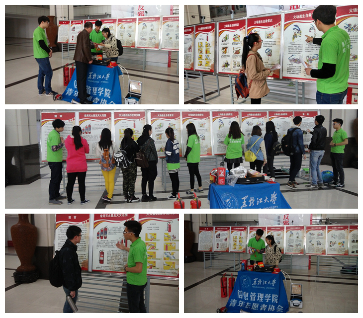 为进一步增强全校师生的消防安全知识,提高消防器械的实际操作能力,B体育青年志愿者协会于2015年4月17日在汇文楼大厅内举行消防安全展活动。信管青协全体成员参加了本次活动。
