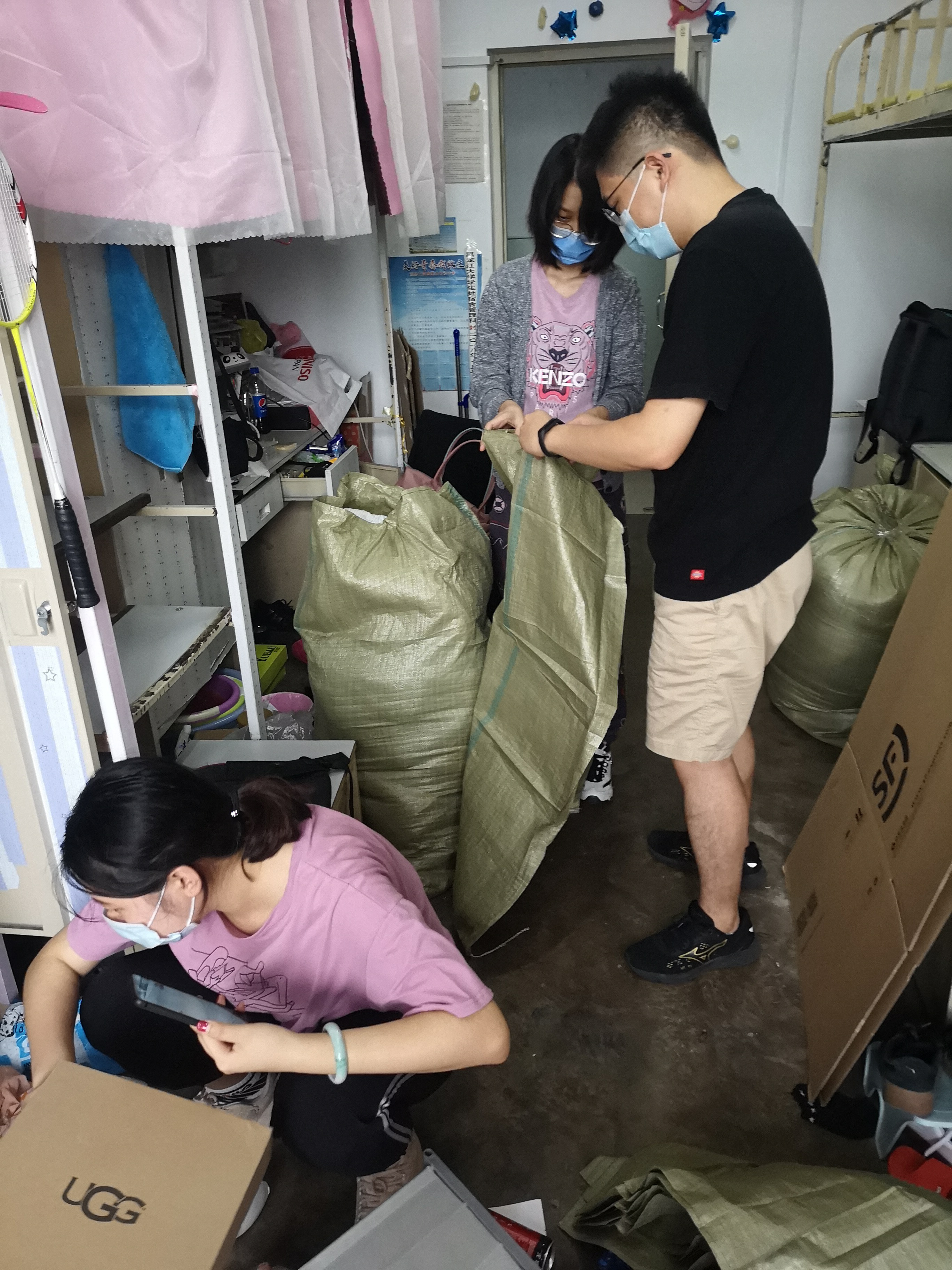 为落实学校分批分次返校以及毕业生离校相关工作要求,做好首批本科毕业年级返校学生服务工作并确保整体工作顺利开展,做到有的放矢。经因工作原因无法返校的学生自愿申请,2020年6月10日,B体育党委副书记、副院长王法山老师与各年级辅导员深入相关毕业生寝室,开展整理、打包等工作。