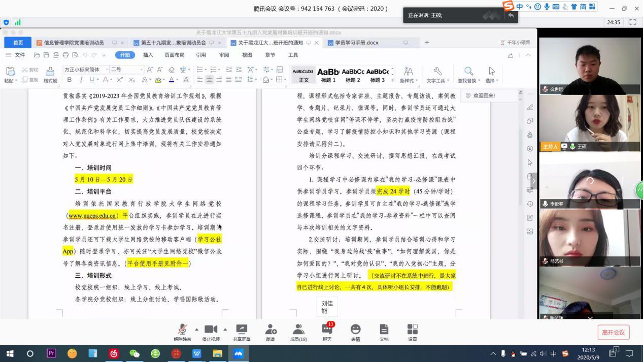 培训伊始,王硕老师为学员们讲解了网络培训的时间及要求,包括考核事项、考核方式以及培训的具体细节。要求学员认真学习党的知识,认真对待党课培训,认真准备党课考试,明确党校学习的目的和意义。也希望学员们发挥带头作用,努力学习,增加学员间相互交流,并为学员们提出的问题做出了认真的解答。