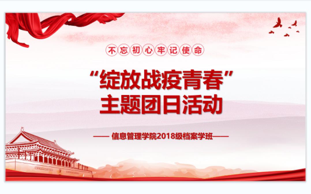 为深入学习习近平总书记关于疫情防控工作的重要讲话和指示批示精神,认真贯彻落实习近平总书记给北京大学援鄂医疗队全体“90后”党员的回信精神,激励和引领广大青年学生在党和人民最需要的地方贡献力量、绽放青春,B体育2018级、2019级所有团支部组织开展以“绽放战疫青春”为主题的线上主题团日活动。