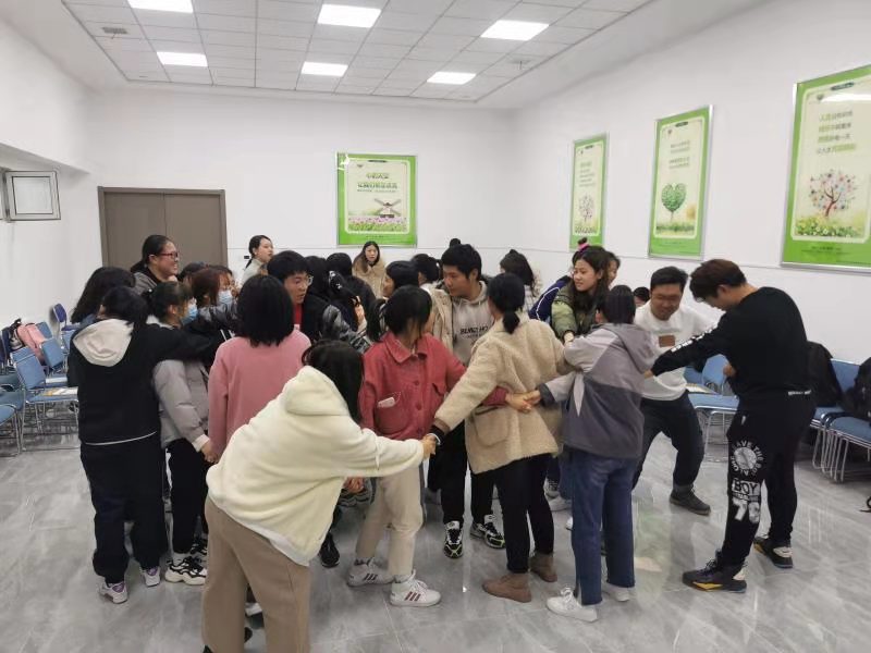 “无声排队”游戏中考验同学们的默契,提高大家的凝聚力;“个性名片”让仍有些些陌生的同学们在这个游戏可以能够互相熟悉,并找到与自己兴趣爱好相同的朋友;“超级访问”让同学们在访问和被访问中不断地增进了解;“平地而起”游戏里同学们之间无缝配合,充分发挥团队合作能力,沟通能力以及执行能力。在团体训练过程中,同学们之间互相交流、彼此联系,对于班级里的同学都有了更多的认识。最后一个游戏“心有千千结”是一个集智力与团结一体的游戏,考验同学们的合作精神与领悟能力,通过团体的力量来一起解决面对的难题。当大家最后解开错综复杂的关联网重新成为一个圆圈时,许多同学都表示自己在这一过程中从中获益匪浅。