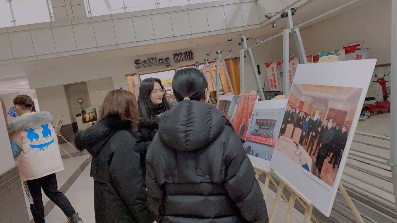 本次观展共欣赏抗疫主题摄影作品70余幅,精选摄影作品用生动的影像语言定格了医疗工作者们肩负使命、一往无前的感人画面,记录了社会各界防控疫情、复工复产和疫后新生的难忘场景,展现了全省人民战胜疫情的坚定信心和必胜决心。B体育学生团委副书记带领学院学生骨干进行观展,组织部长及宣传部长悉心介绍了每张照片背后的感人故事:由于长时间超负荷工作,被防护服捂得发白而又褶皱的手;在疫情期间出生的新生命;医护人员家属举着的手写加油牌;在寒风大雪里坚守岗位的抗疫防控员;奔赴前线的医疗队伍;许许多多的社区志愿者……
