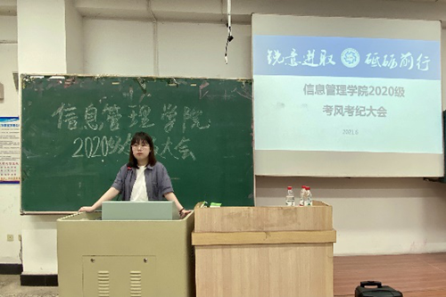 紧接着,辅导员老师强调了学业预警和严肃考风考纪的相关内容。近期,各门专业课程已经进入尾声,期末考试近在咫尺,对于有相关学业预警的同学要端正学习态度,特别注意学业上的学习问题,希望同学们能够努力复习备考,在考风考纪方面,要树立正确的价值观念,严禁违规舞弊。