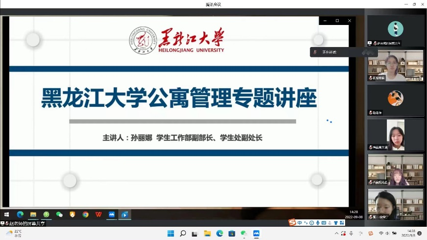 寝室作为我们的第二个“家”,是我们生活、休息、学习的重要场所,为帮助2022级新生树立宿舍安全防范意识,B体育于2022年9月8日下午15:30通过腾讯会议开展了公寓安全管理专题讲座。学生工作部副部长、学生处副处长孙丽娜老师担任主讲人,B体育团委副书记、2022级辅导员王硕老师及2022级全体新生参加本次活动。