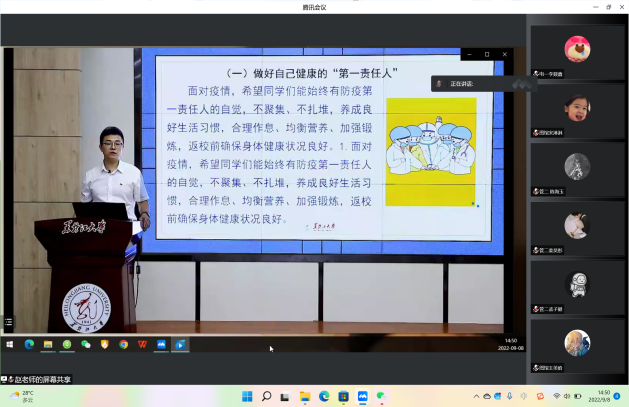 郑老师向全体新生普及了科学防疫的相关知识与措施,提醒全体新生们要积极配合学校所开展的防疫工作。防控疫情,人人有责,不容忽视,面对疫情,希望同学们能始终有防疫第一责任人的自觉,遵守学校的相关疫情防控规定,养成良好的生活习惯,合理作息、均衡营养、加强锻炼,返校前确保身体健康状况良好。随后,郑老师就开学报到条件、流程等相关事宜进行细致地讲解。