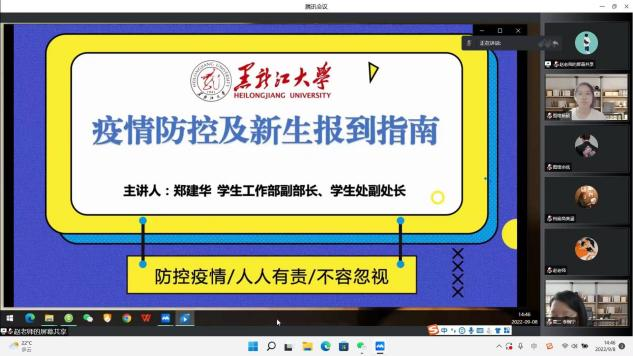 金秋九月,叠翠鎏金。新学期初始,疫情形势却依旧严峻。为提高同学们的疫情防护意识,B体育于2022年9月8日下午15点开展防疫宣传教育活动,本次活动由学生工作部副部长、学生处副处长郑建华老师担任主讲人,B体育团委副书记、2022级思想政治辅导员王硕老师及2022级全体新生参加本次活动。