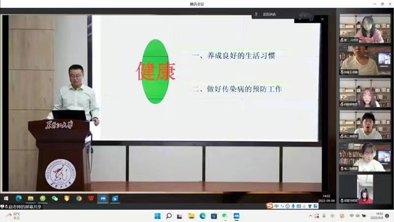 为进一步提升2022级新生们的自我保护意识,引导同学们关注身体健康,提高疾病预防意识,B体育于2022年9月8日14:00通过腾讯会议线上开展身体健康与疾病预防讲座。本次讲座由李鸿翼老师担任主讲人,B体育团委副书记、2022级辅导员王硕老师和全体新生参与本次讲座。