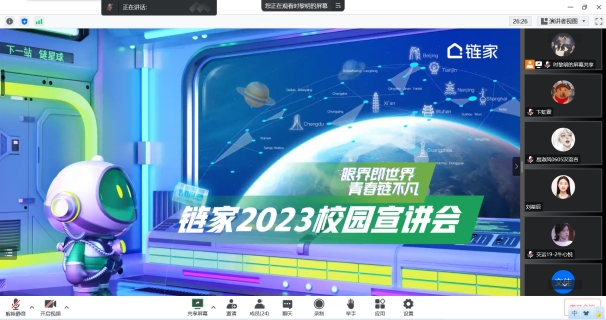 链家集团坚持服务内核,对内根据人才的发展需求为成员建造CG文化圈、提供温馨舒适的办公环境,对外健全门店社区服务、便民应急服务功能,为优秀人才搭建延伸工作能力、获得价值满足的平台。宣讲结束后,时黎明为同学们解答了相关问题,同时介绍了投递简历的方式和公司的联系方式,为有就业意向的同学们发放电子报名申请表,表示集团后续将对申请表及简历进行筛选并安排线上面试。