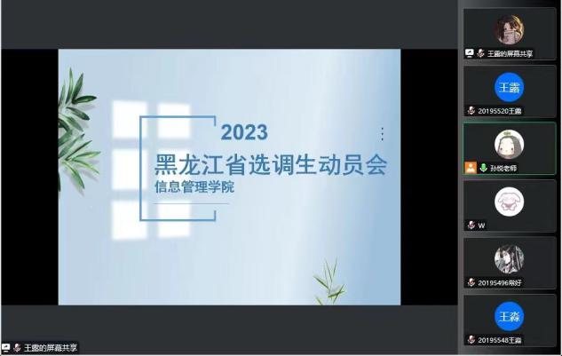 为帮助我院2023届毕业生了解选调生招录工作政策,确保选调生报名工作顺利进行,B体育于2023年1月29日14:30通过腾讯会议线上召开2023年黑龙江省选调生动员会。本次动员会由B体育团委书记、2019级思想政治辅导员孙悦老师主持,有意愿报名选调生的学生参加此次会议。
