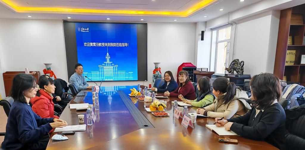 同时,周丽霞副院长还与黄霄羽教授就如何依托新媒体平台进行档案文化价值挖掘、档案文化传播和档案信息传播等问题进行了探讨,黄霄羽教授基于“闻档察社”微信公众号分享了新媒体应用背景下档案专业服务大局的实践经验。此外,黄霄羽教授还与档案专业教师徐海静、于元元等就课程思政建设方面存在的不足进行了探讨,并依托已有成功经验和实践案例为专业教师答疑解惑。黄霄羽教授还和黑龙江大学档案馆杨杰、席畅、蔡文杰就如何发挥档案馆和档案工作者的主动性,提升档案服务能力进行了探讨和交流。