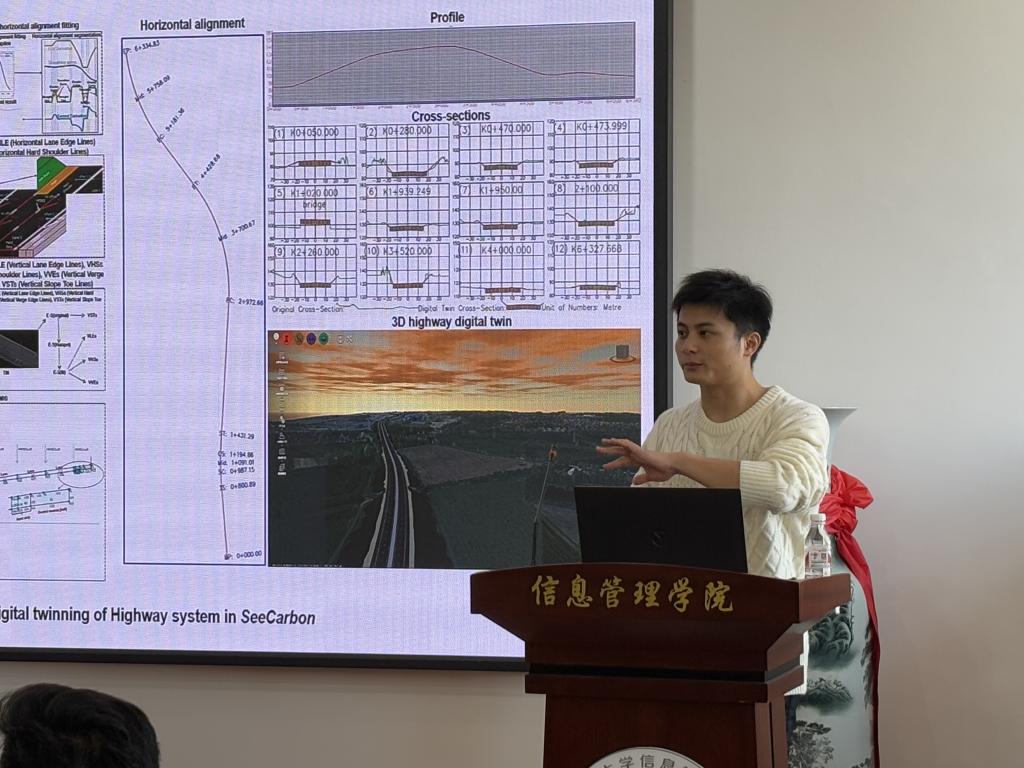 陈龙博士是建筑与土木工程领域的杰出学者,具有丰富的科研与实践经验,尤其在建筑信息建模(BIM)和数字孪生技术领域建树颇丰。讲座中,陈博士主要分享了关于数字孪生技术在各类建筑空间运维管理中的前沿探索,并以丰富的案例展示了如何将数字孪生技术应用于图书馆等复杂建筑空间的设计与管理过程,他分别从技术层面、几何层面和语义层面详细阐述了数字孪生的具体实现路径与应用价值。