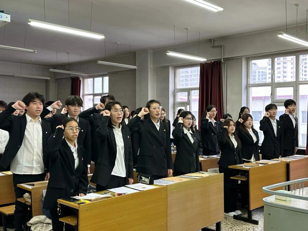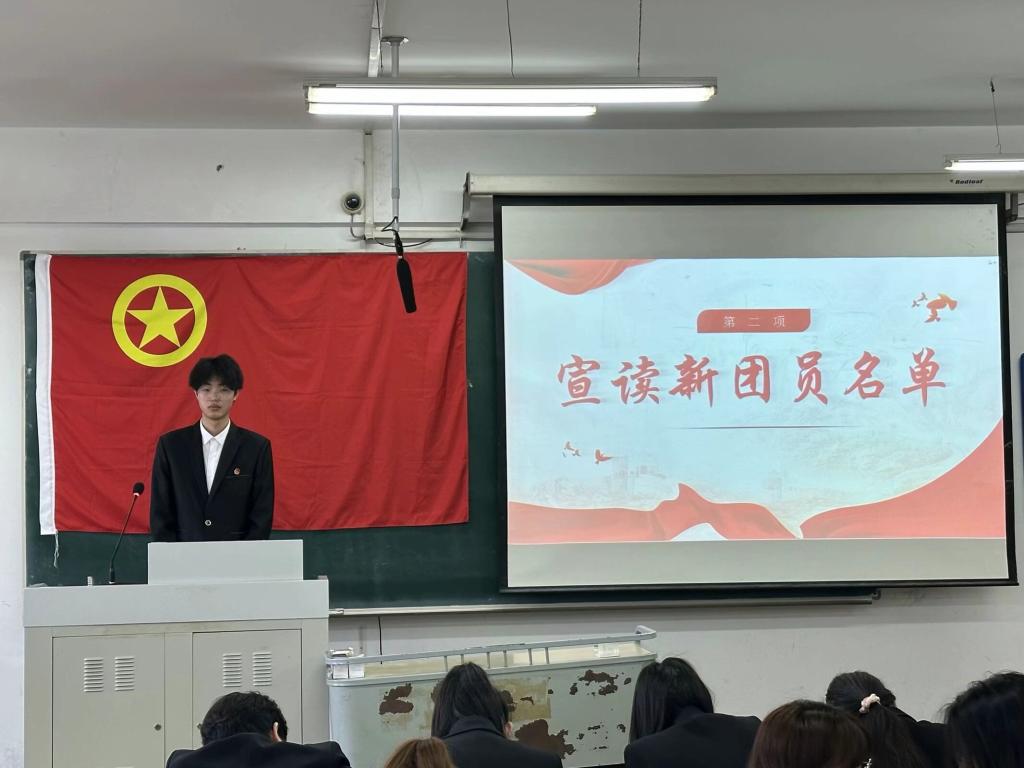 仪式第二项,团委学生副书记高雷宣布2025年春季新发展团员名单并宣读《中国共产主义青年团章程》。他指出,新团员要了解团组织的规章制度和组织纪律,明确个人与组织的关系,不断锤炼品德修为,勇于担当社会责任。