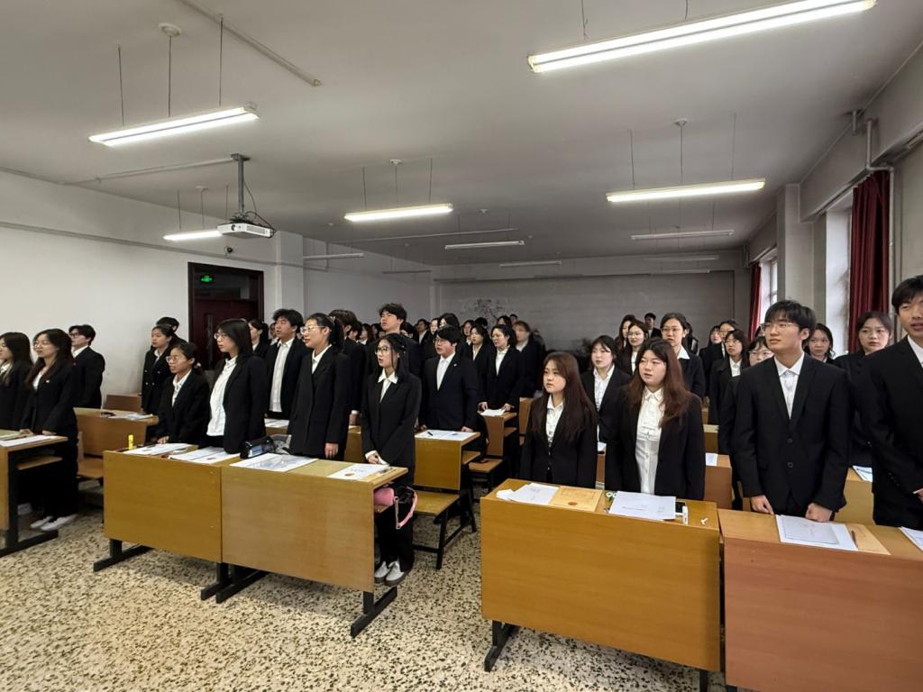 仪式第一项,全体起立,奏唱国歌。在庄严肃穆的国歌声中,入团仪式正式拉开序幕。