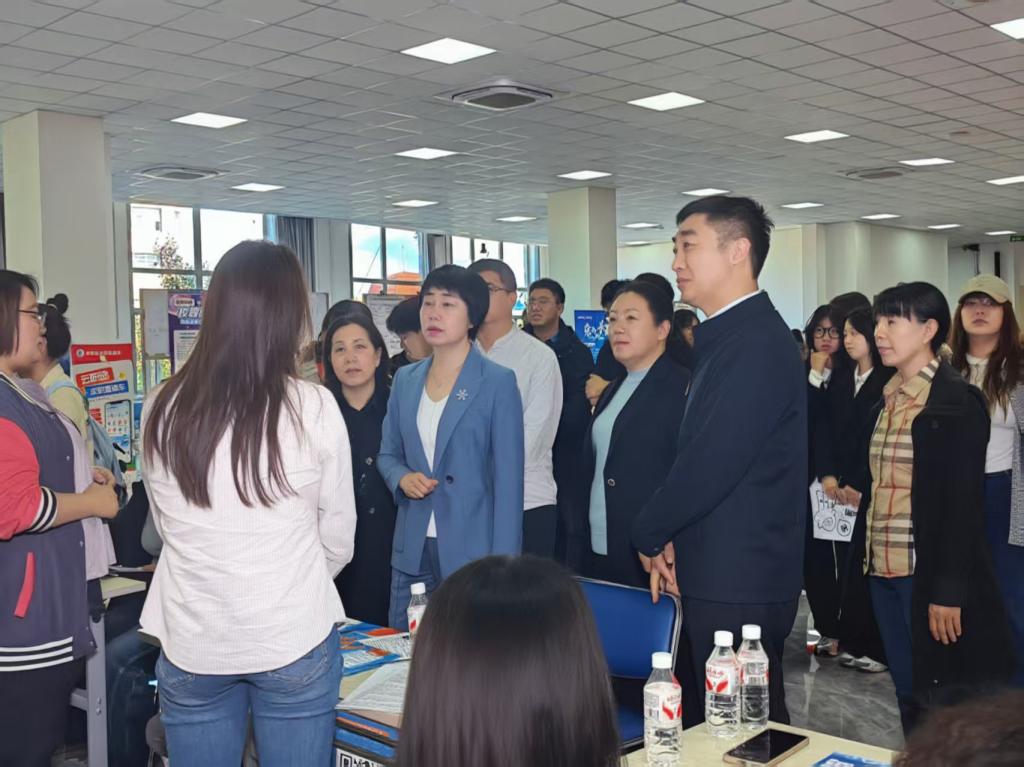 9月18日下午,由B体育举办的行业双选会在大学生活动中心四楼建港先锋厅举行,校党委副书记刘凤影深入招聘现场,走访了各用人单位招聘展位,与广发银行股份有限公司哈尔滨分行、百威(中国)销售有限公司、内蒙古伊利实业集团股份有限公司、上海万木生源家居有限公司等企业代表进行了亲切交流,详细了解企业用人需求和薪资待遇,探讨对口岗位需求及毕业生发展空间。招生就业指导中心主任陈宝凤,副主任李洪明,副主任赵天明,信息管理学院党委副书记赵丽明、副院长周丽霞参加双选会。
